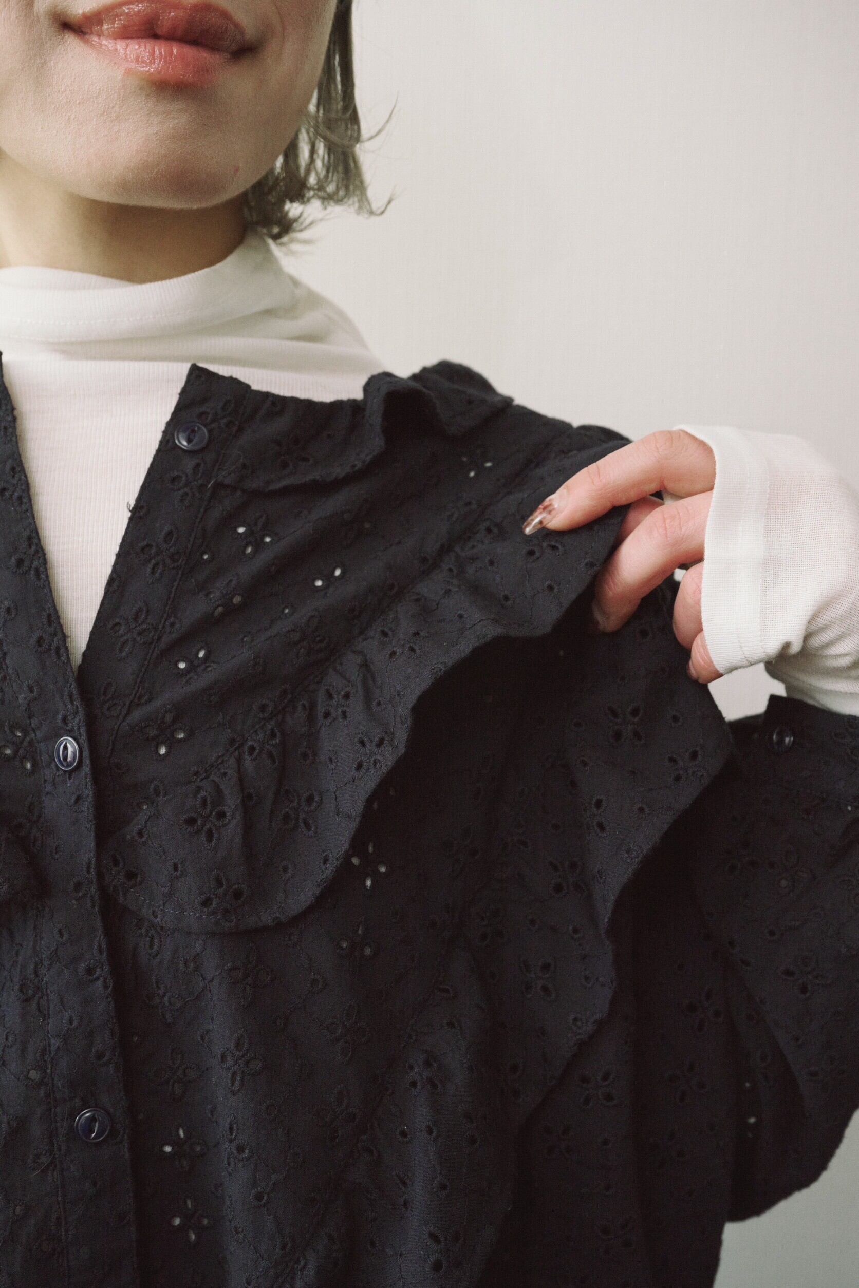 デザイナーが当時のvintageshopのバイイング、ディレクションをしていた20代の感性が直球に落とし込まれて誕生したblouseを、時を経てライフスタイルや自身のアップデートを行い、フリルの幅や丈感や身幅などディティールを更にリアルに、かつ幅広い年代の方にお届けしたい思いでリバイバルいたしました。