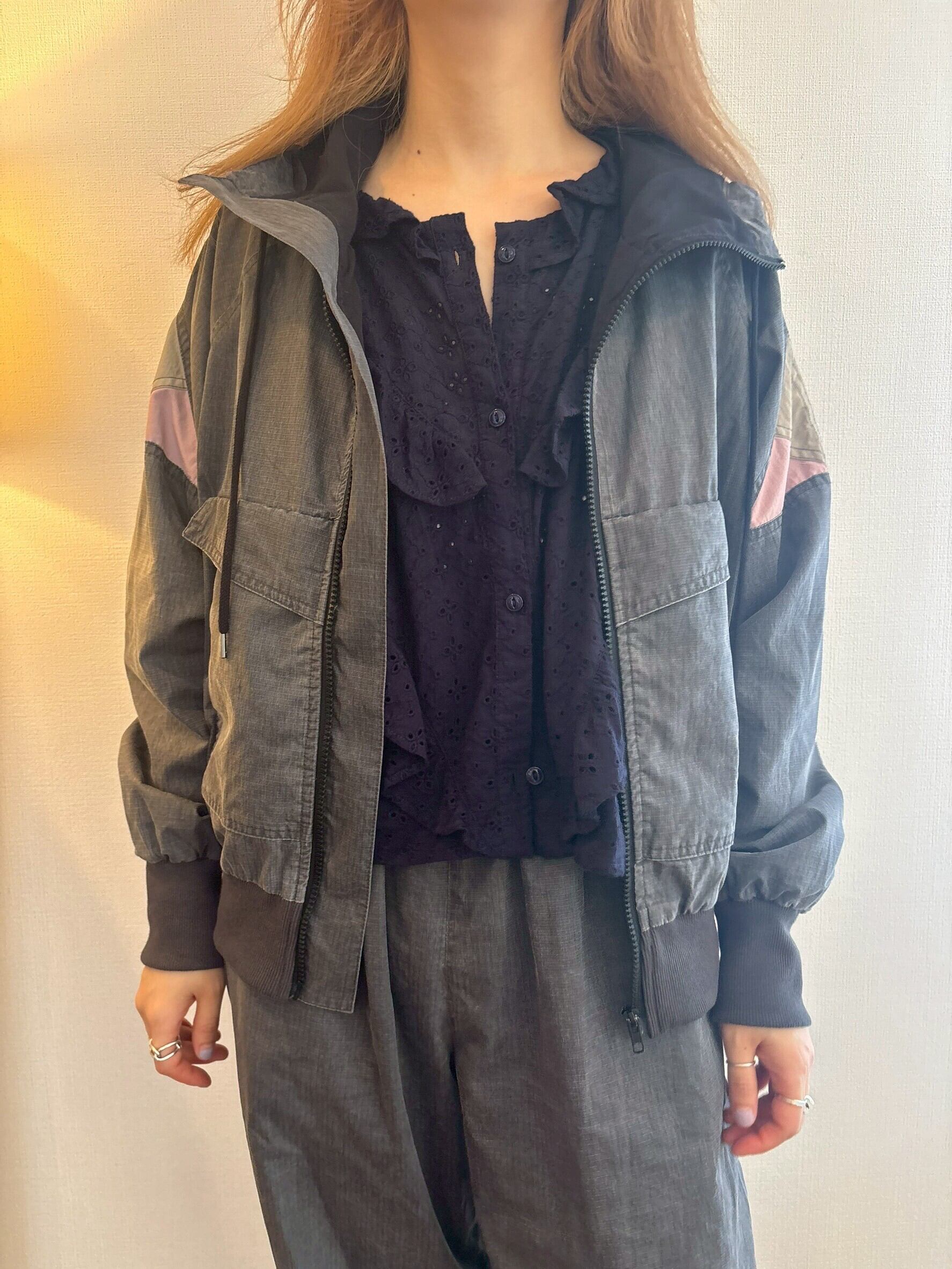 Ski pantsとセットアップで着るジップアップに、更にケープを付けたジャケットです。