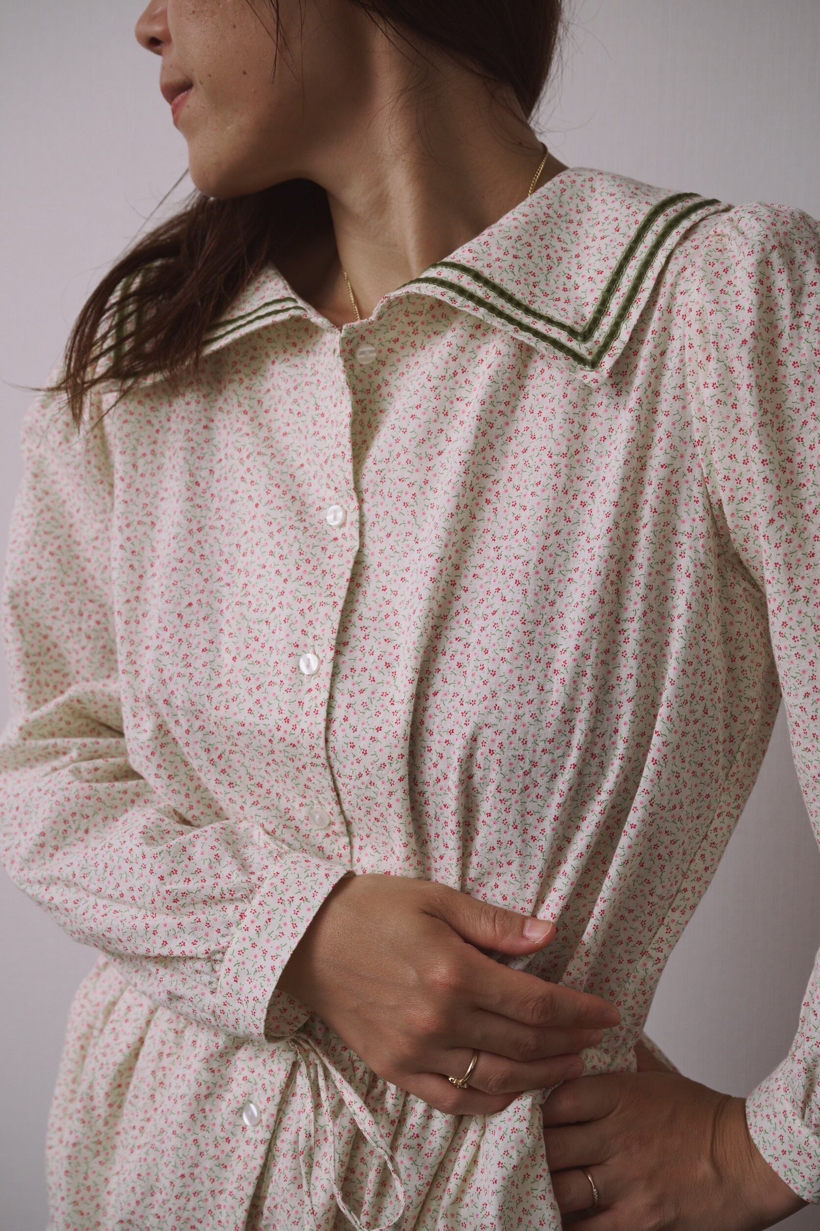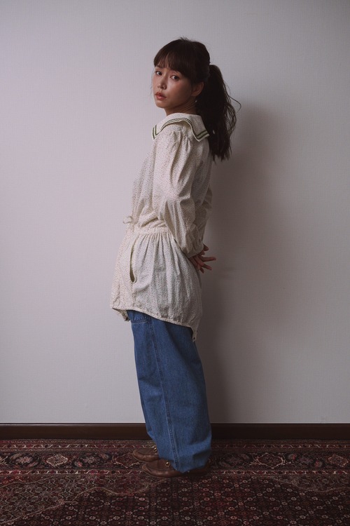 ボトムスを上から履いたり、ボトムスの上からスナップボタンをお外しいただいて、ミニドレスシャツのように着ていただいても。
