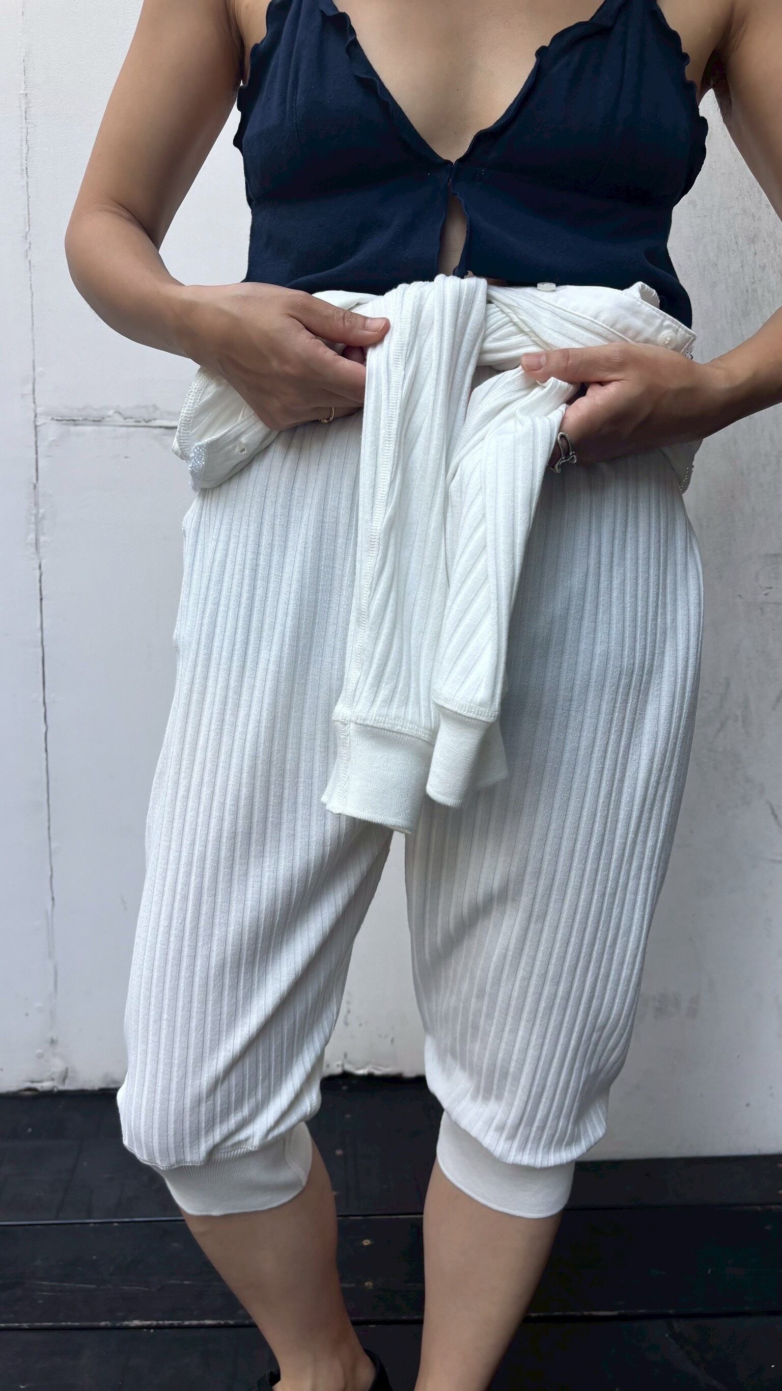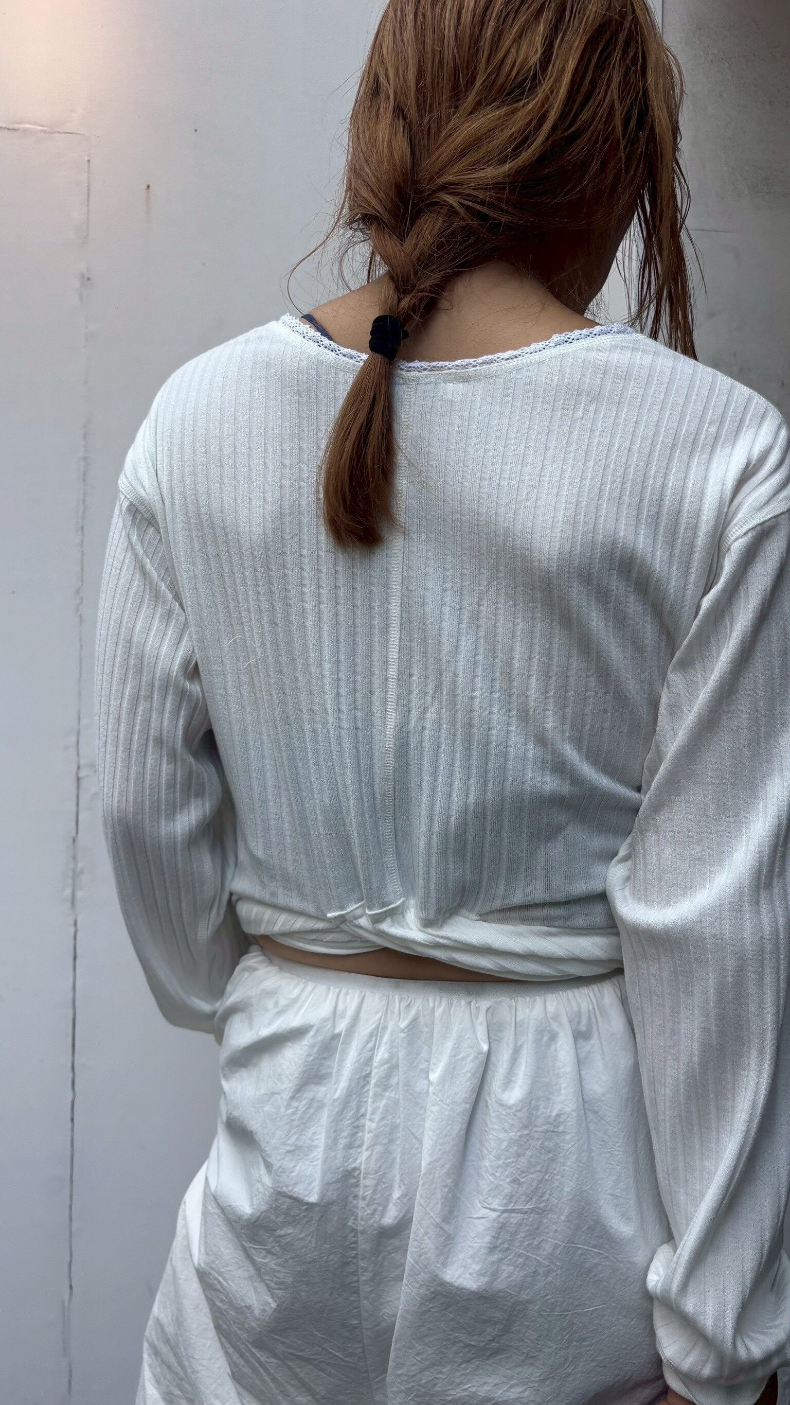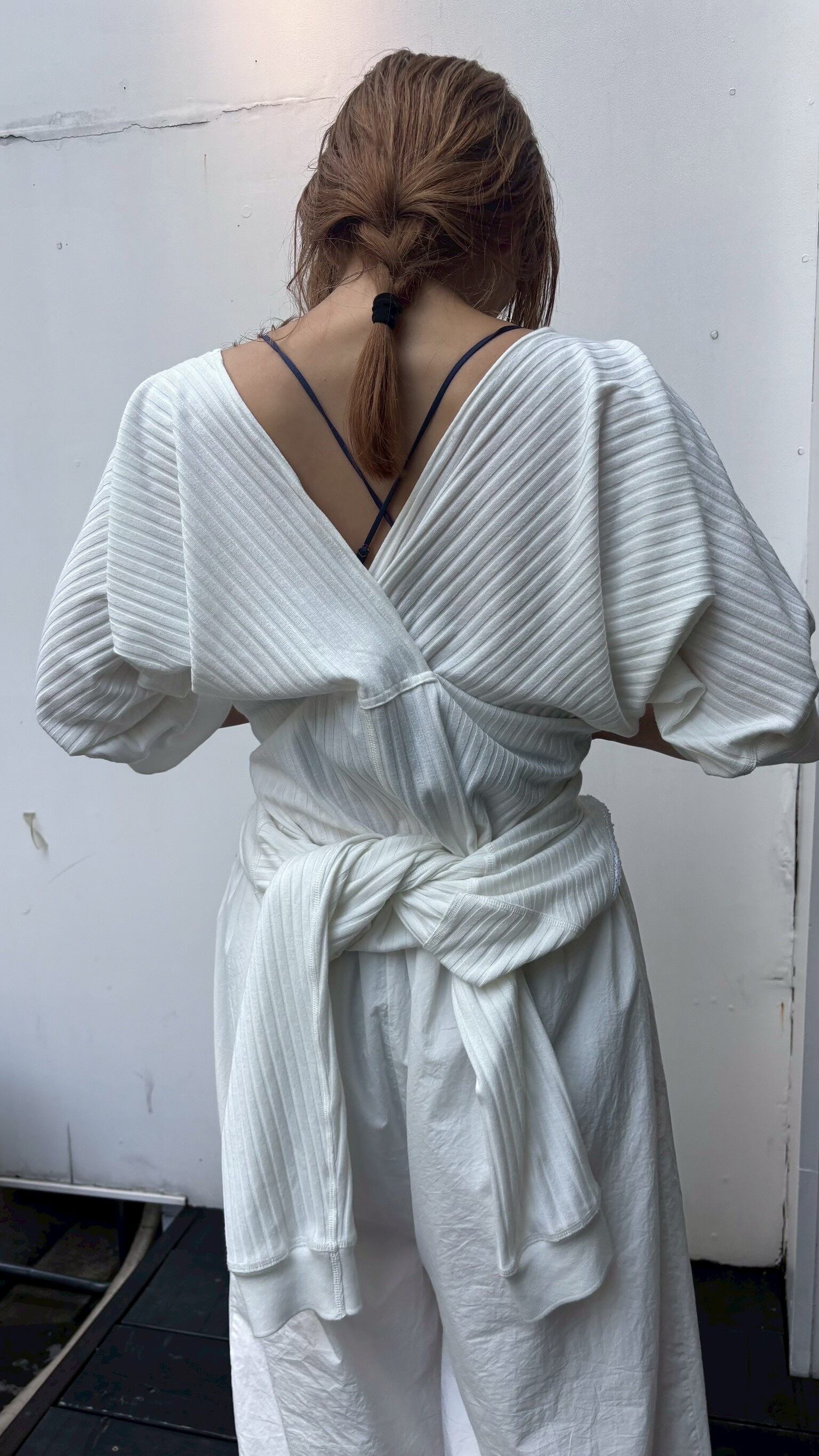 ②両腕を抜き腰巻きをしてバイカーショーツ(ボトムス)