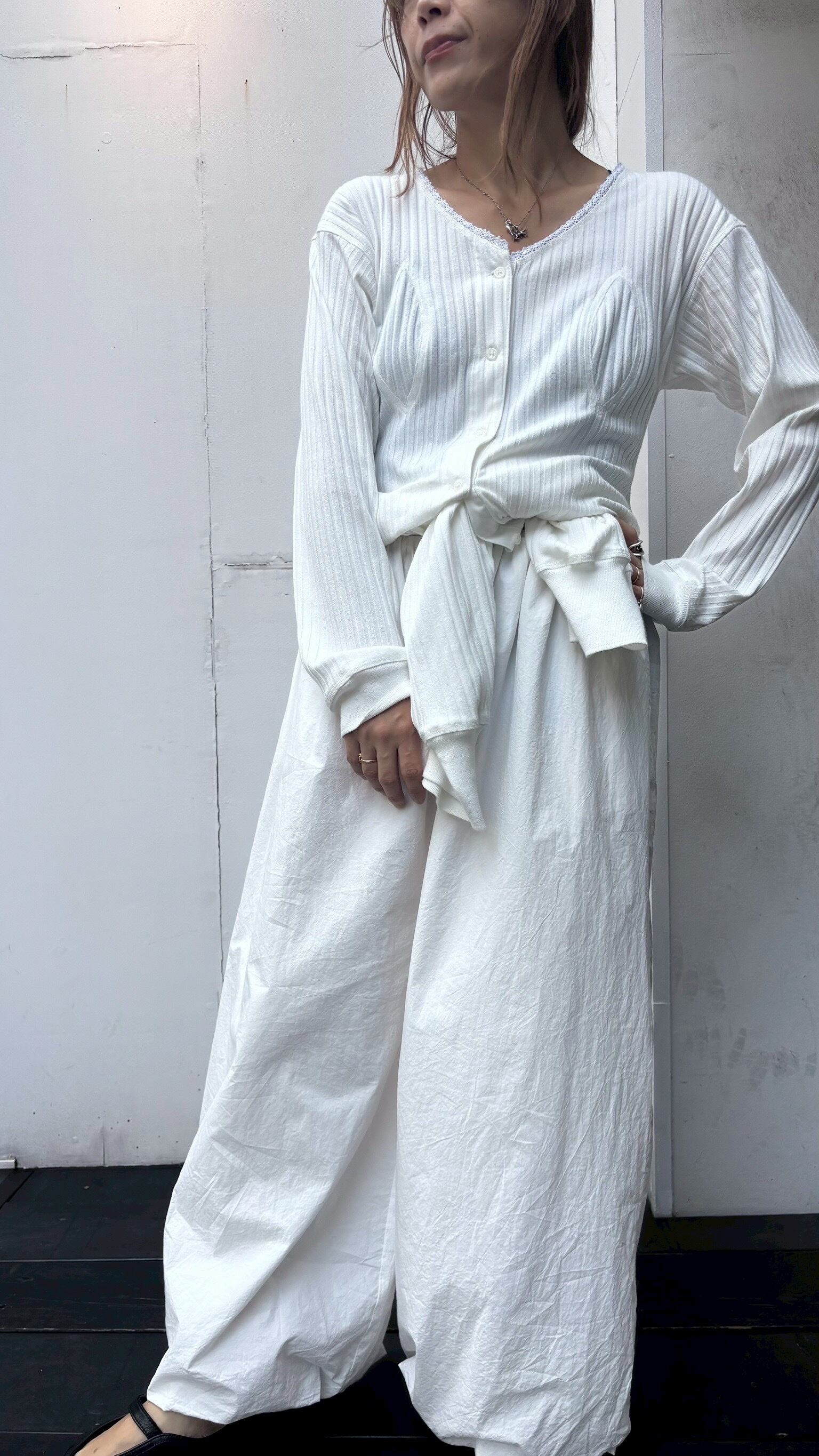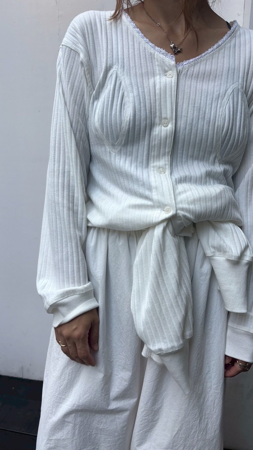 素直に1枚1着ではその生地の心地よさとV開きネックにレースを施しどこか女性らしさをマーク。
