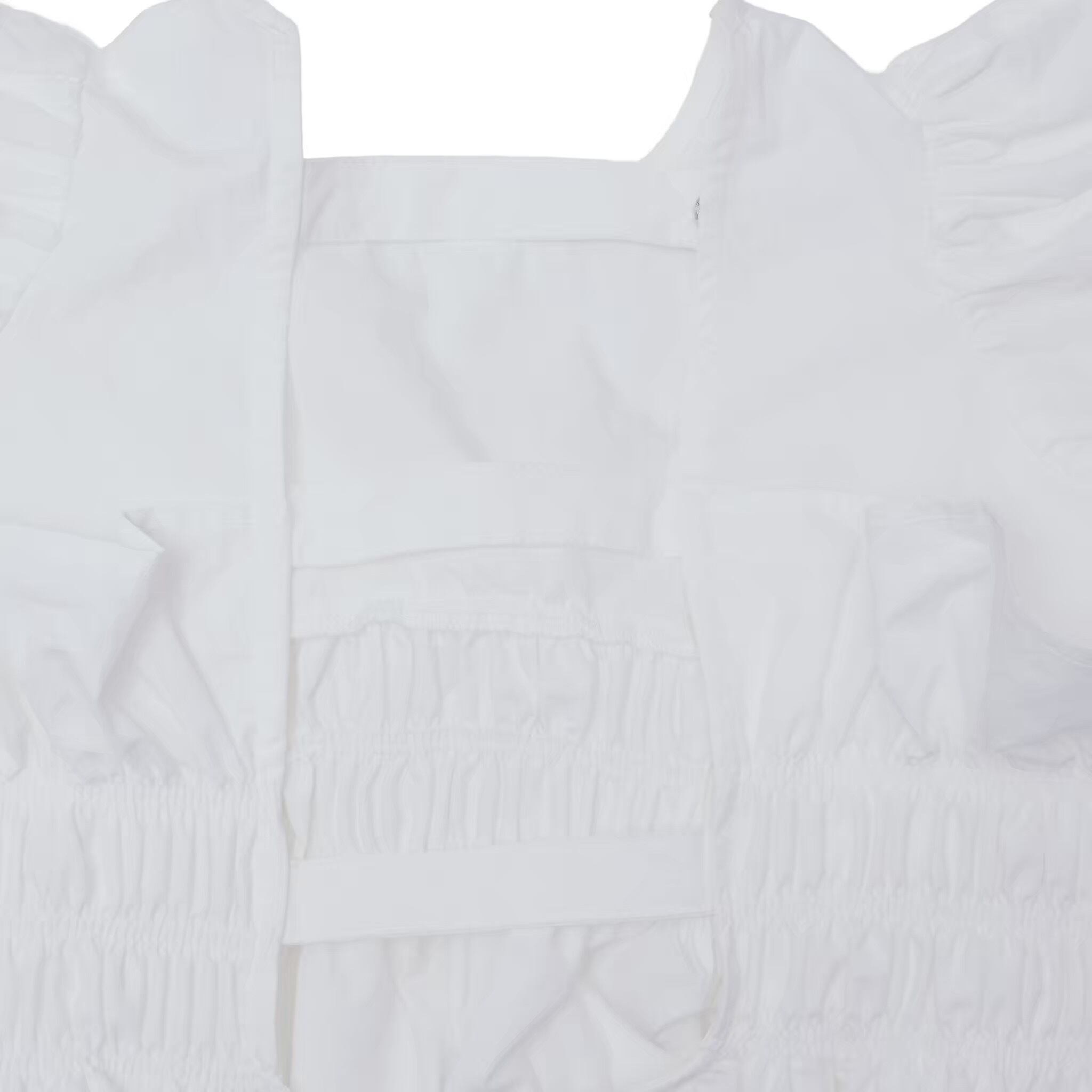 パフスリーブは程よく、前身頃の波打つデザインはチュニックとして一番重要である