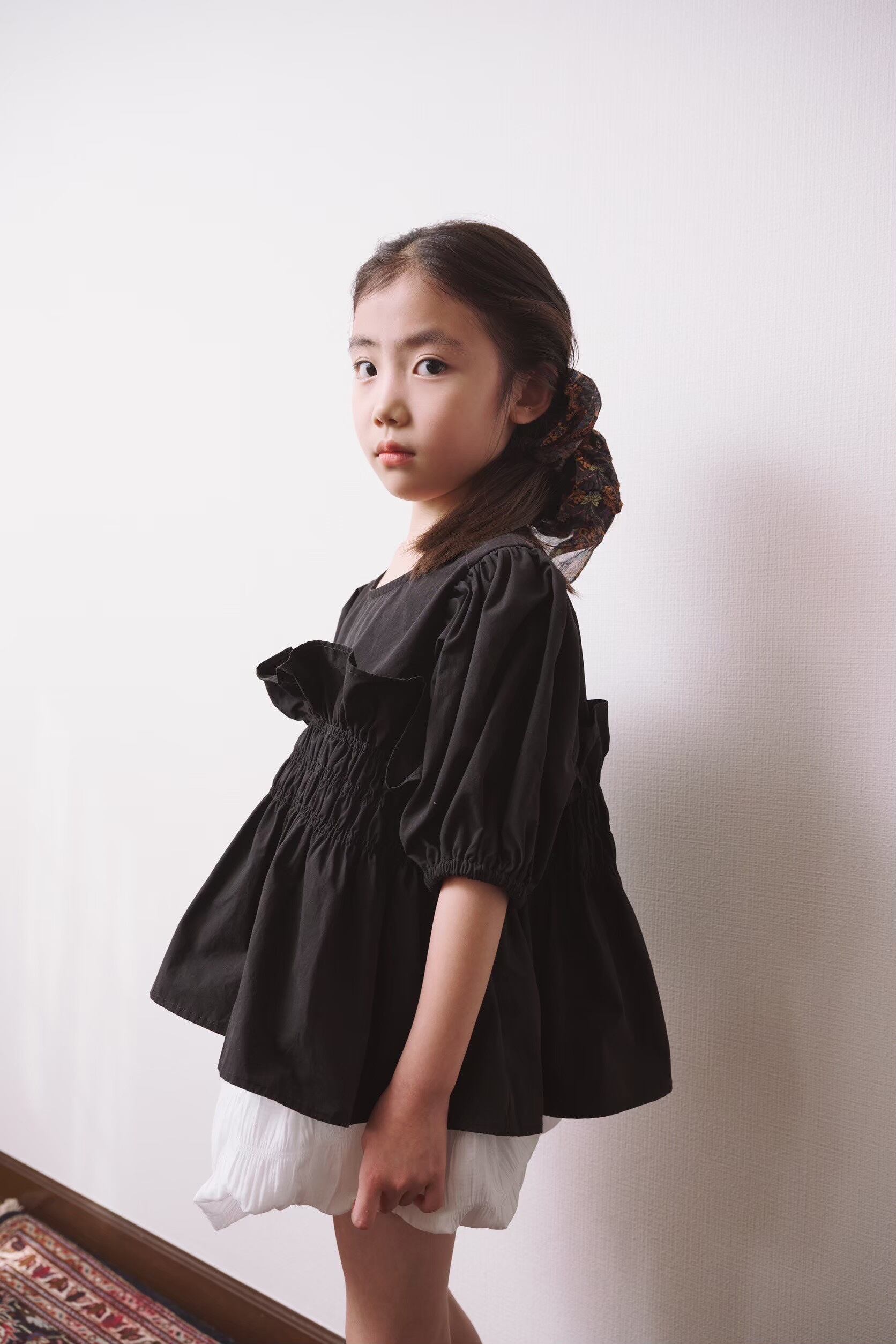 パフスリーブは程よく、前身頃の波打つデザインはチュニックとして一番重要である