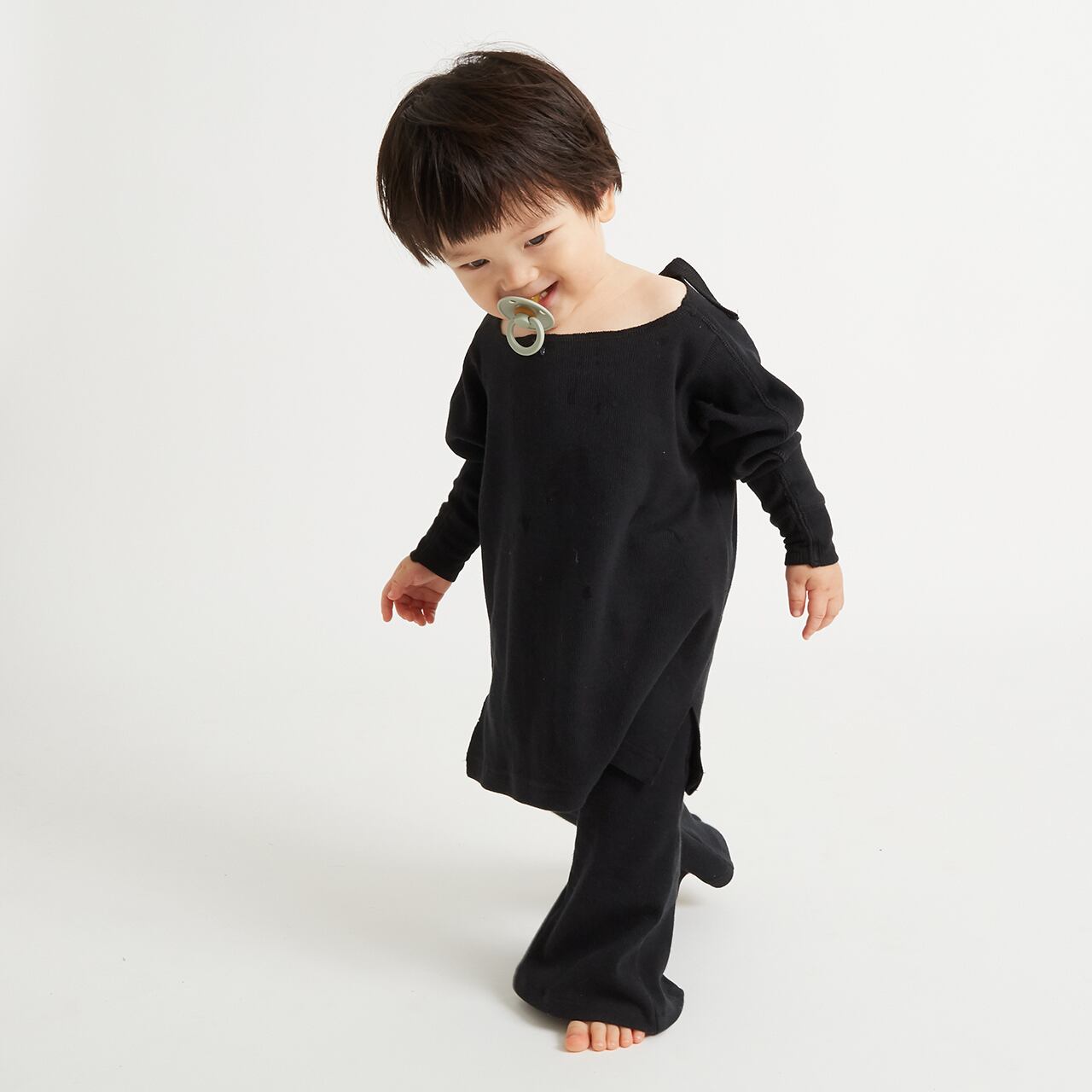 ウエスト調整可能なので歩き始めるお子様から就学されたお子様目安でと かなり幅広く着ていただけます。 キッズのベルボトム、1着は持っていたいマストピースです。 サイズ 身丈 50 ウエスト 22 裾 19 素材 コットン 100 着用モデル身長 80cm