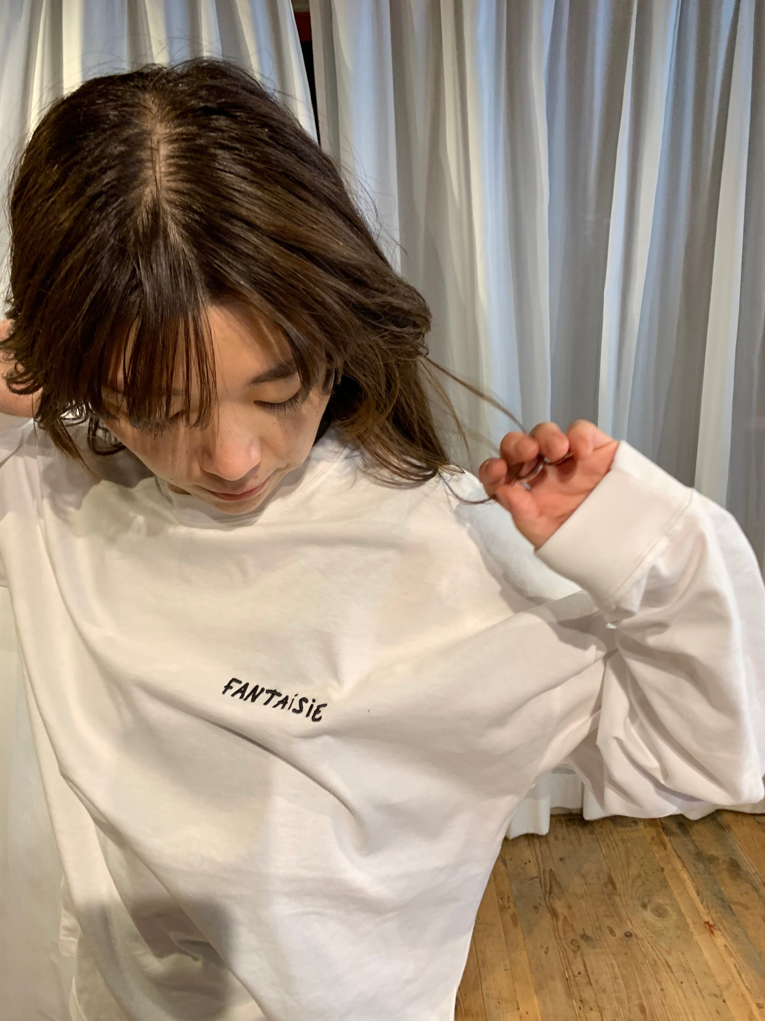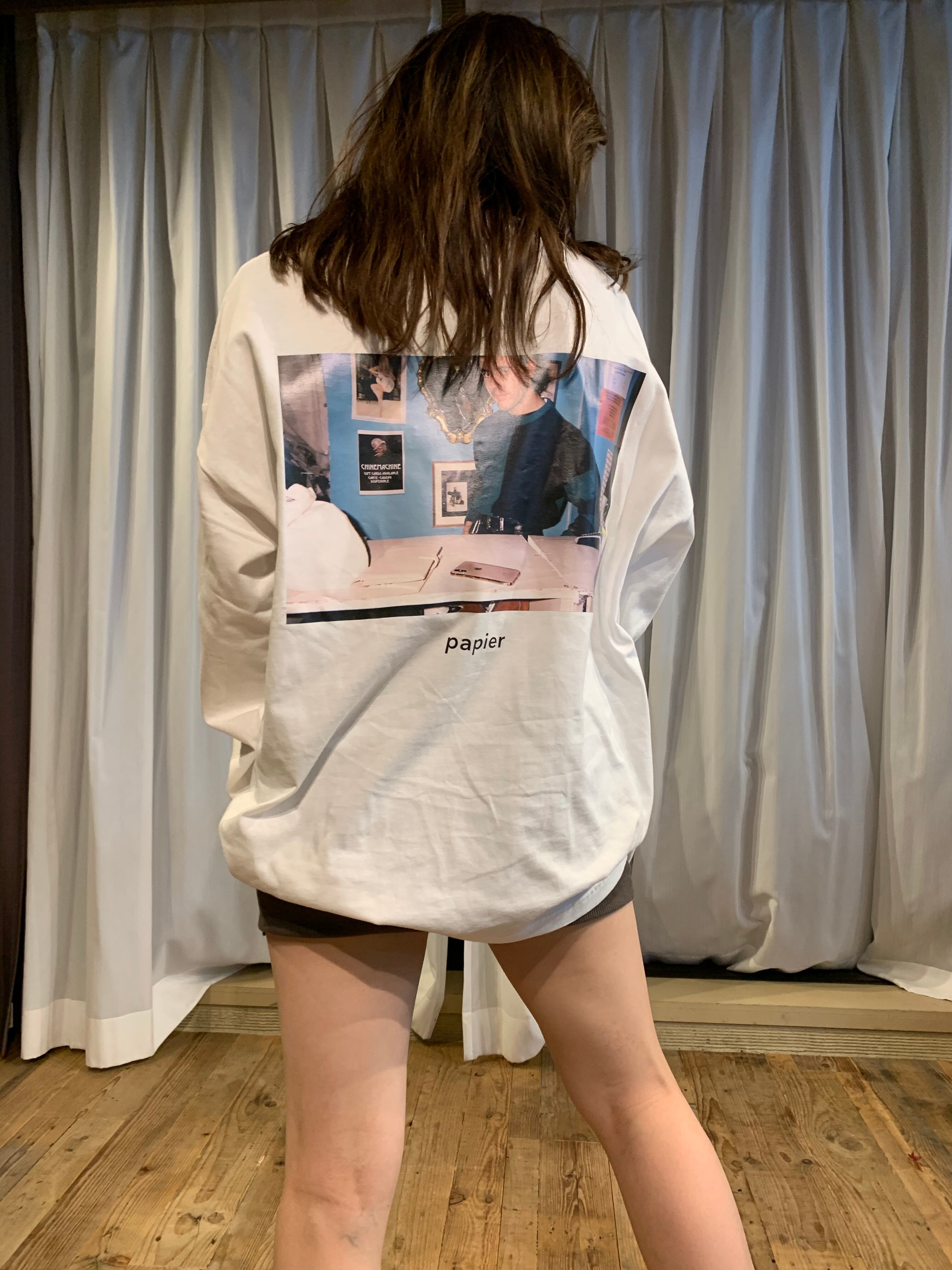 papier 記念すべきデビューのステージとなったpaeris,Franceにて 偶然の出会い avec Lucas, 彼とアクリルカチューシャが粗く、そしてキャッチーに映し出された写真はディレクター自らが 撮った写真。 ボディはオリジナルで作成し肩が大胆にドロップしており、 フロントの刺繍はLucas自身による執筆、そして ディレクター伴とのdisccusを経て生まれた完全オリジナルのL/S made in japanです。