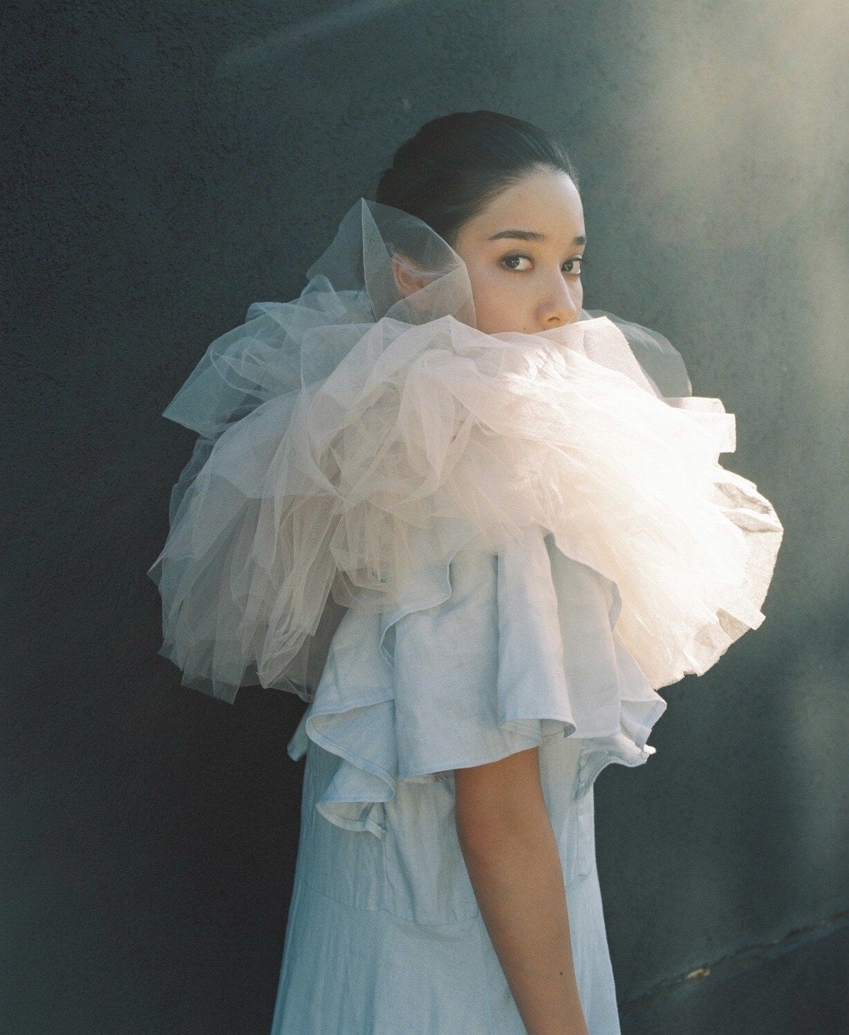 フリリーなレイヤードスカートに羽が生えたようなウイングムードな袖を際立たせるような、お持ちのアイテムとの着合わせ方でカジュアルダウンもお楽しみ頂けます。