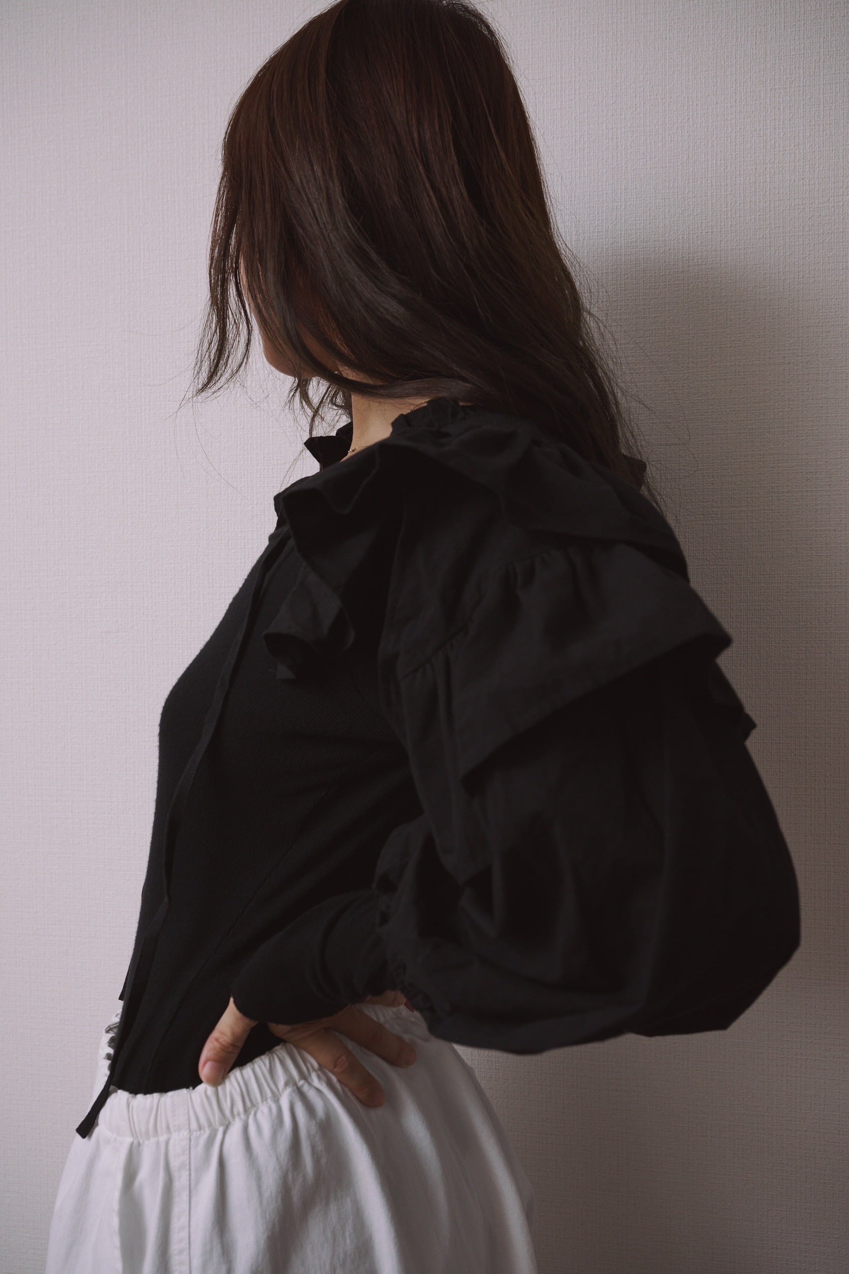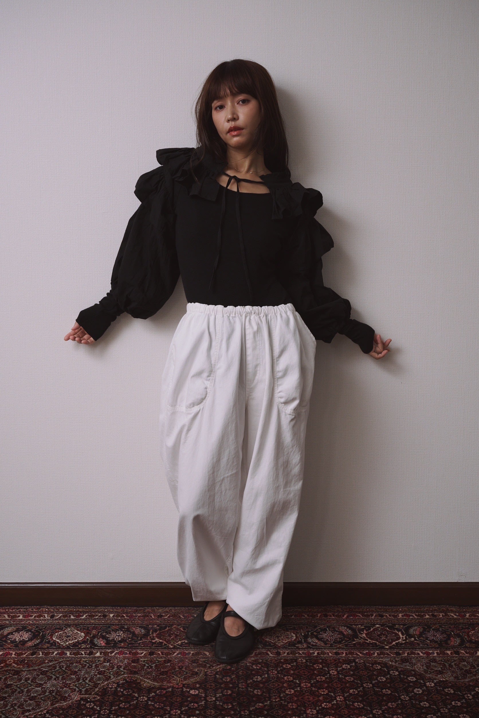 アームはフルではなく七分丈、程よいパフ感があり締めどころにはキュッとゴムで留まるので、