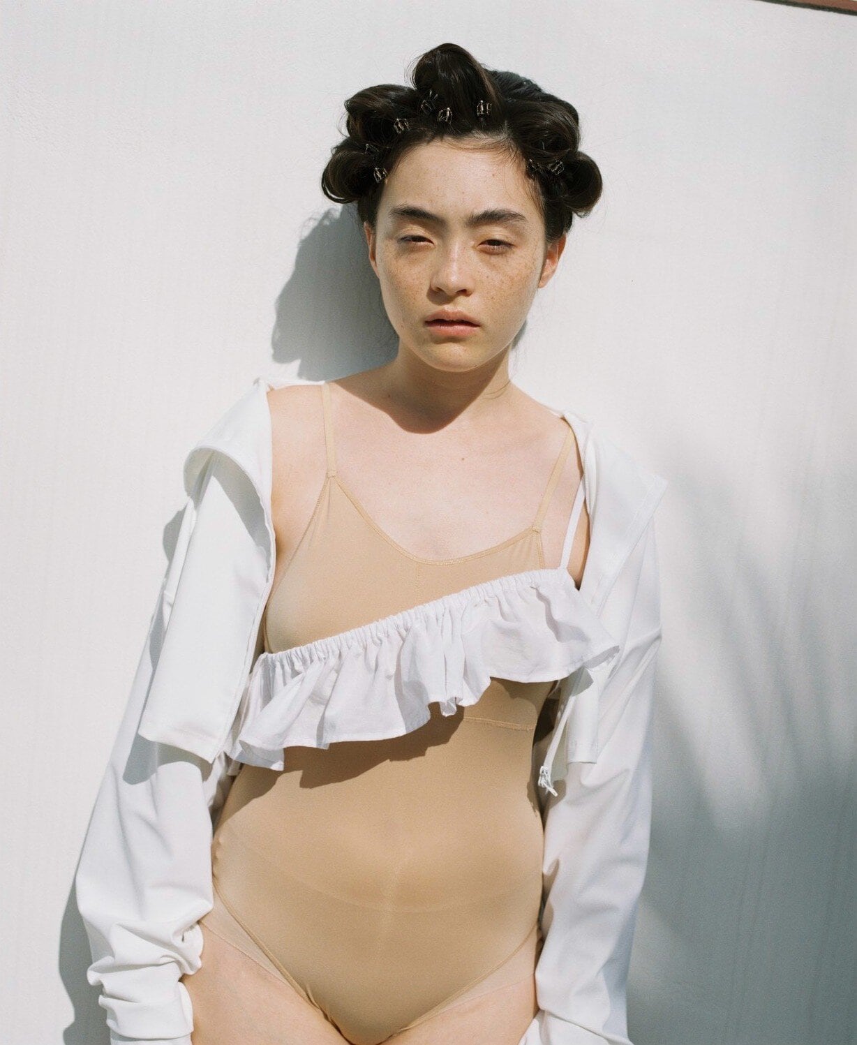 アイテムとしてはブラトップの部類にあたりますが、肩ストラップを抜いたり、腰まで落としてみたり、可愛らしいフリルをどう着るか、という楽しみ方が魅力のpapierならではのアイテムです。