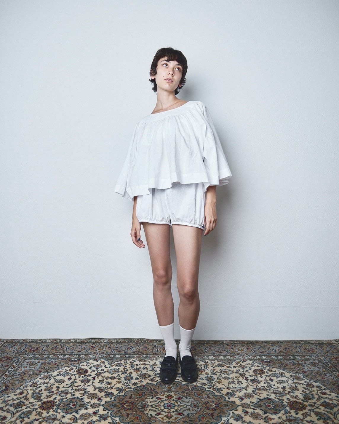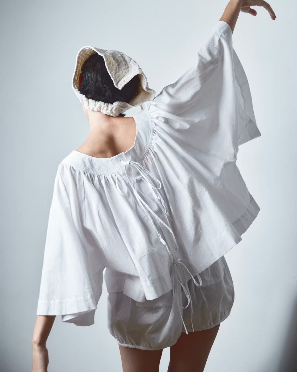 羽織にも、被りにもなり、綿素材が軽く腕のギャザーの揺れと気持ちの軽快さがリンクします。