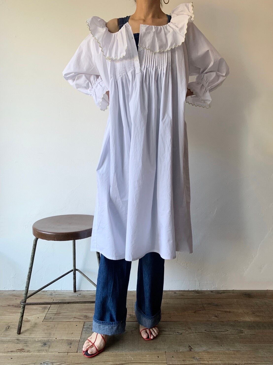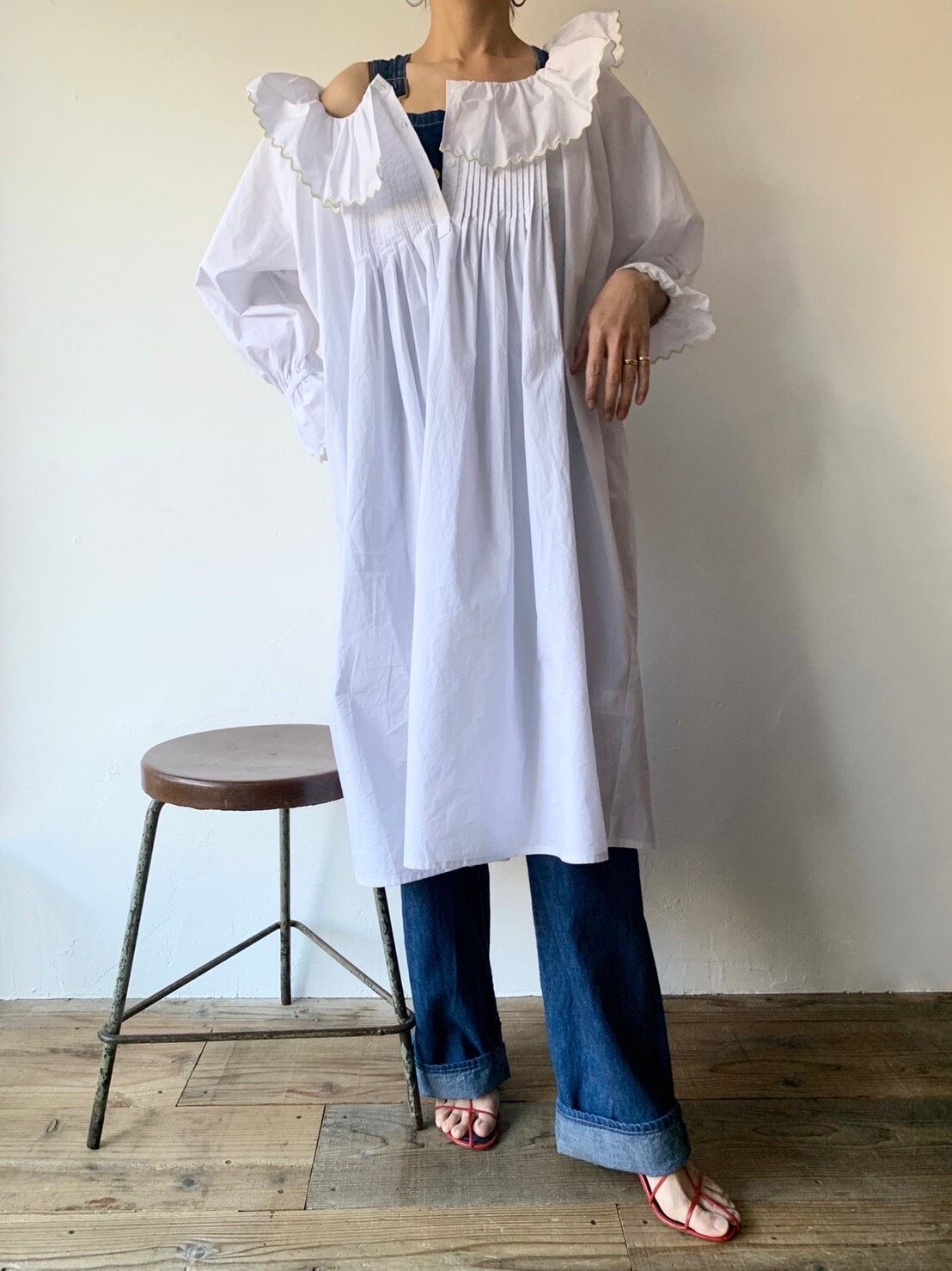 キャリーブラッドショーが、こちらを着て、NYのアパルトマンで夜中にグラスでbubble drinkを飲みながらコラムを書いている様子をイメージ。carrieが現実に舞い降りたかのようなドレスシャツです。