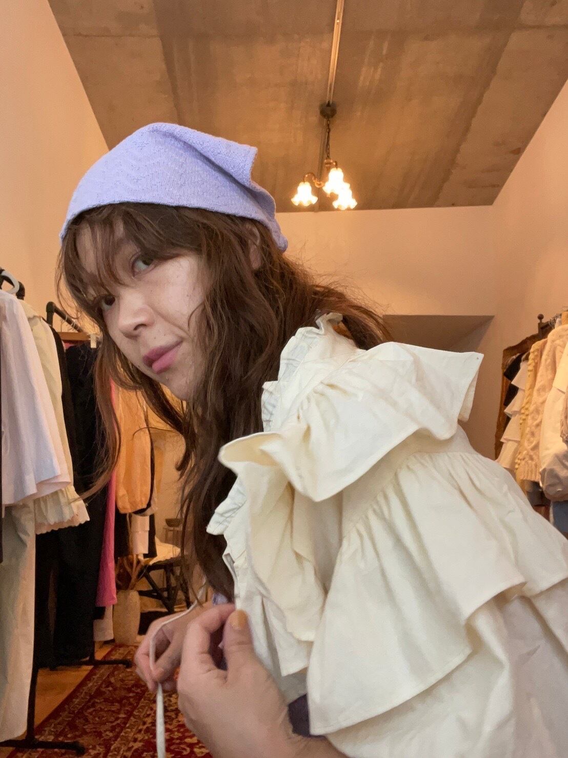 papierには欠かせないヘッドピースが今シーズンも登場しました。 22awのbutton buistierの生地を使用したバンダナ。 伸縮性があり、細く施したバックバンドは、hairだけでなくface dress itemとしてのアクセントにも。 サイズ FREE 着丈 27.5cm 身幅 24cm コットン100%