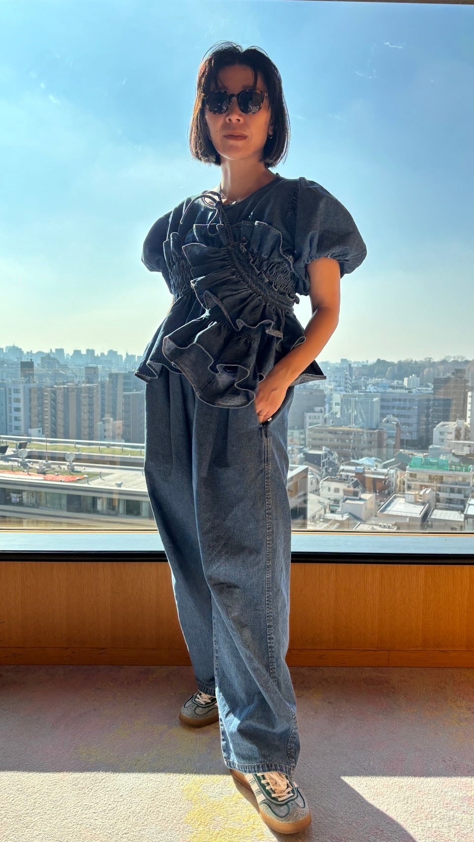 パフスリーブは程よく、前身頃の波打つデザインはチュニックとして一番重要である