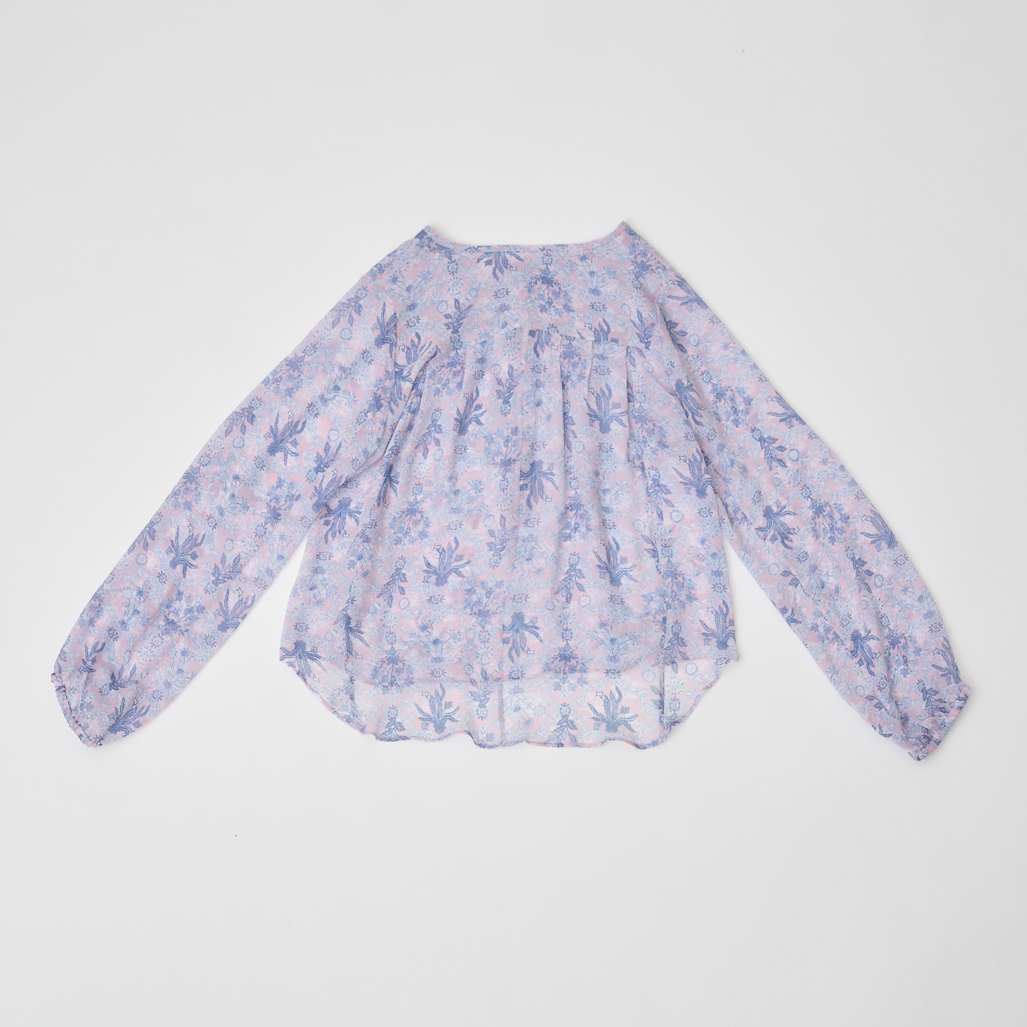 エアリーで快適な着心地でありながら、程よい密度感で絶妙な透け感を持つ12匁シルク楊柳を使用。 シルクならではのリュクスなテクスチャー、繊細なシボ感がプリント柄に立体感と奥行きを与えます。