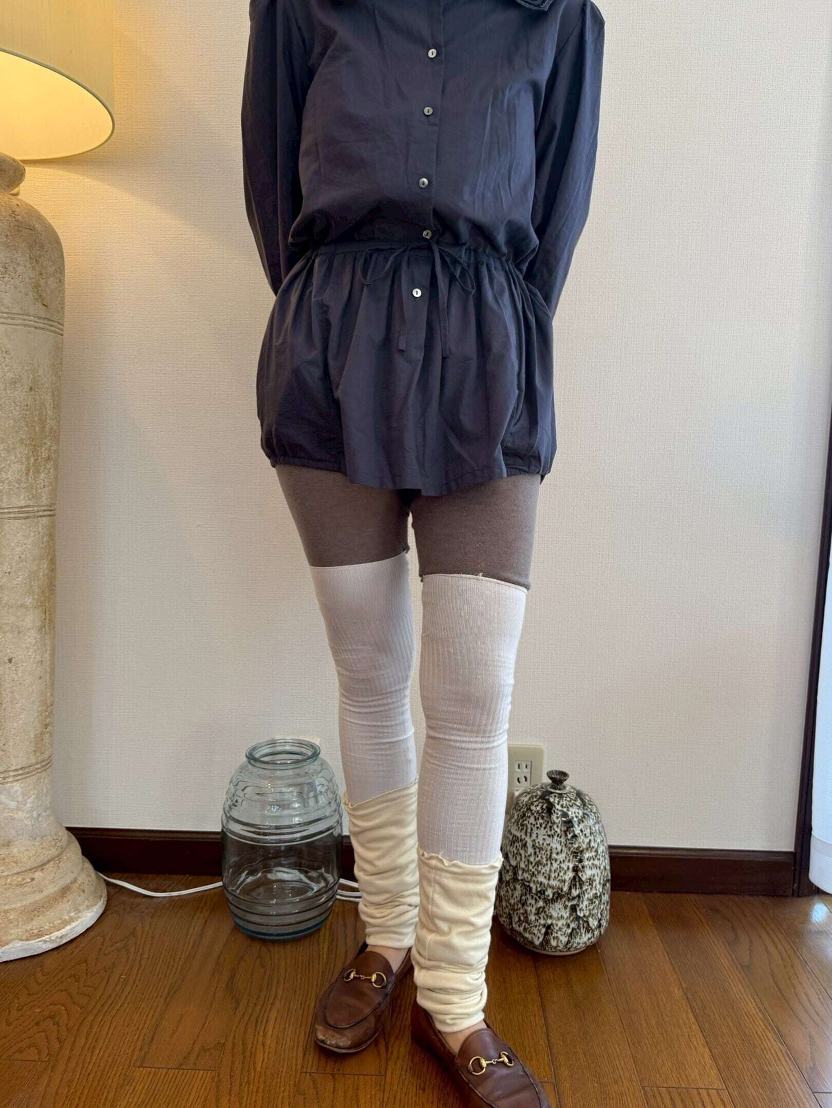 レギンスにソックスを重ねる手間やちょっとの生地、素材選びを外すと成立しない絶妙な”papierらしさ”を叶えました。