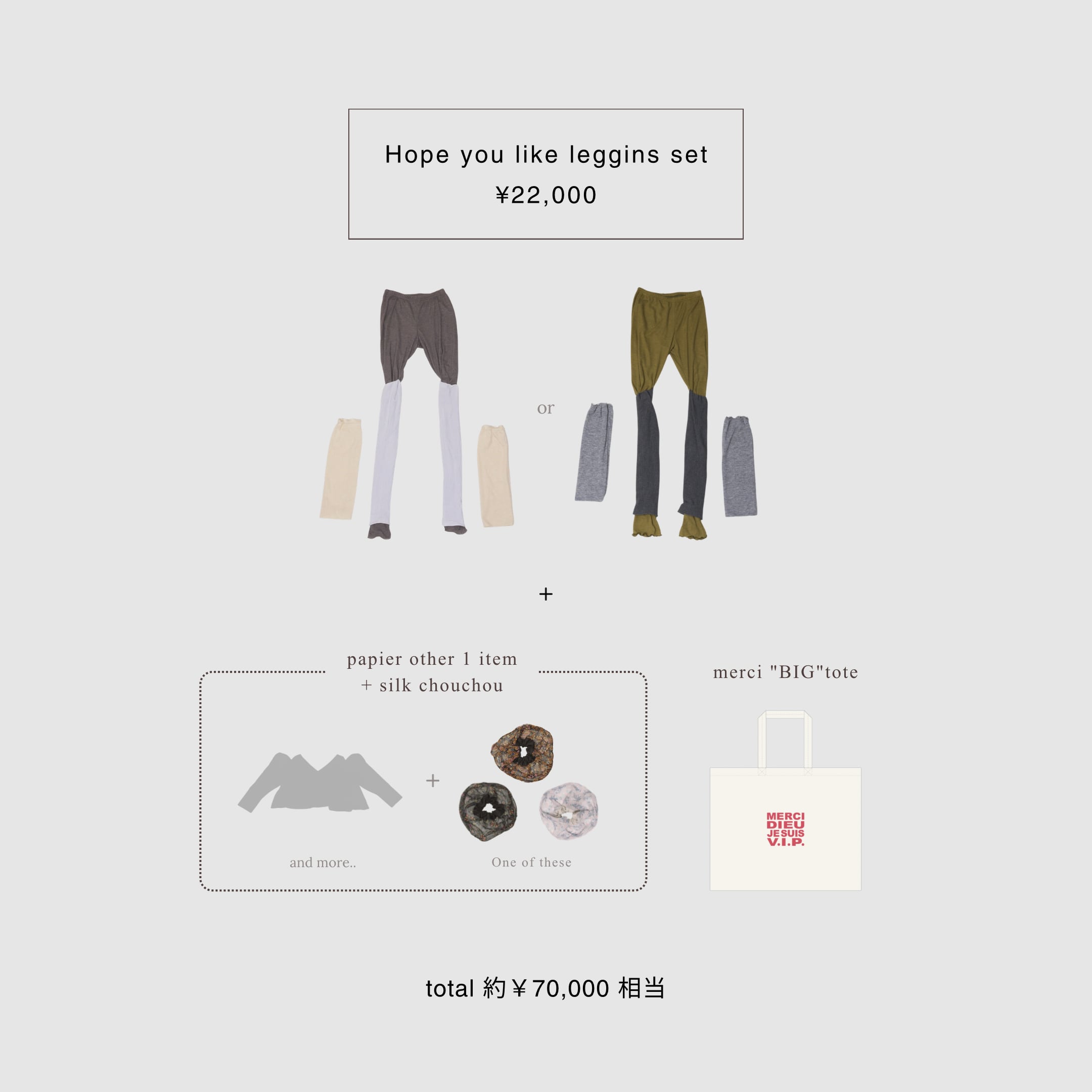 hope you like you leggins/grey/khaki +papier other item1点+silk chouchou (3色ランダム)同梱 約¥70,000相当